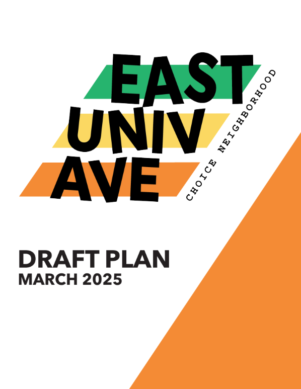 This document is a draft of the final plan document, which details people, housing, and neighborhood strategies for the East University Avenue Choice Neighborhoods site. The draft plan acts as a guide for the final plan by ensuring the outlined strategies properly address the needs of the community.