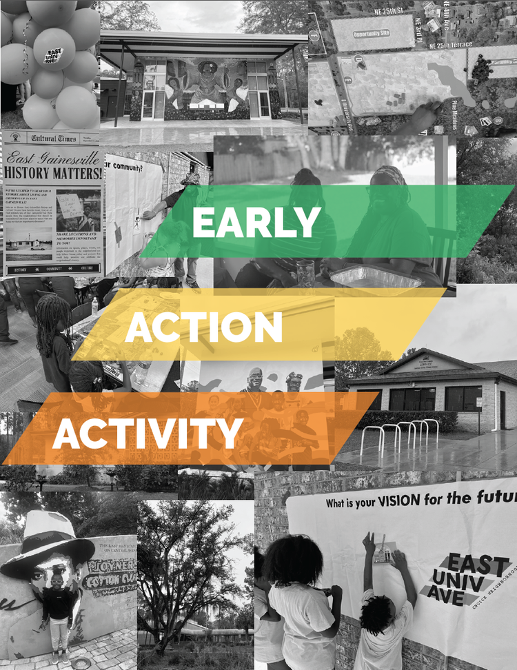 This document outlines the scope of the Early Action Activity, a small-scale, physical improvement project that will be implemented in the East Gainesville neighborhood. The project will primarily focus on creating a plaza which will house local vendors and regular community events.